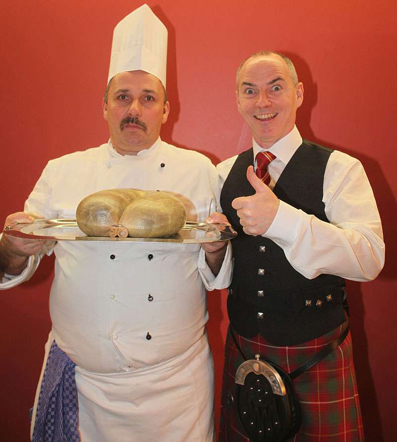 Traditionell am besten mit Kartoffelpüree und Steckrüben servieren. Statt Stampfkartoffeln und Steckrüben können Sie natürlich ihr Alternativ-Gemüse ausprobieren, z. B. Möhrenpüree, Erbsen, Brokkoli, etc. Wichtig dabei: ein guter schottischer Whisky sollte nicht fehlen.