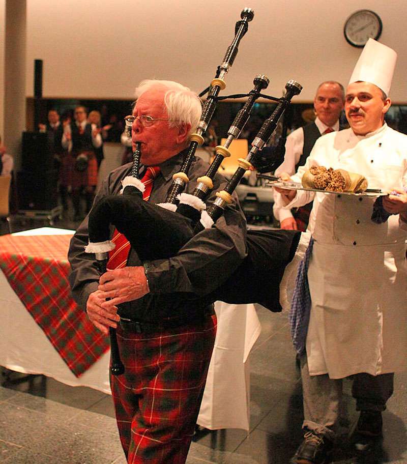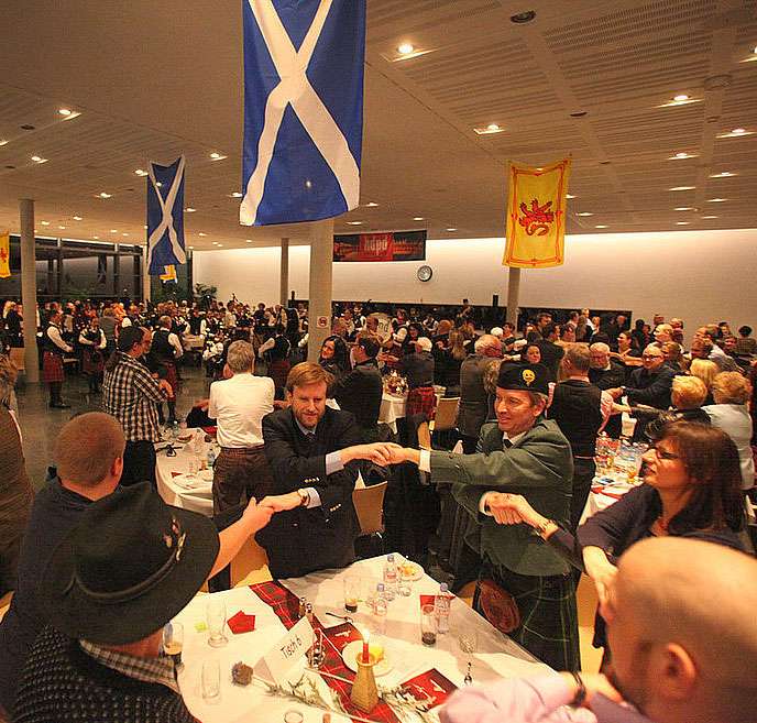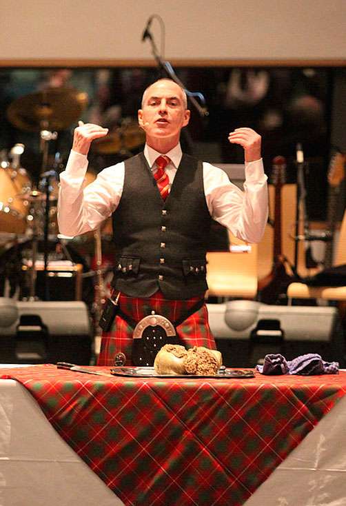 Der Burns Supper ist in Schottland ein jährliches Fest zu Ehren des Dichters Robert Burns. Schon bald nach seinem Tod (1796) veranstalteten enge Freunde von ihm diesen Abend. Gehalten wird es normalerweise an dessen Geburtstag, dem 25. Januar. Auf der Speisekarte steht immer das Gleiche: Suppe, Haggis mit Steckrüben und Kartoffeln (neeps and tatties), und als Nachtisch ein Trifle, eine englische Süßspeise, bestehend aus mehreren Schichten aus Custard (Puddingcreme), Obst oder Marmelade, Biskuitkuchen und Schlagsahne. Der Biskuit wird im Allgemeinen mit Alkohol getränkt. Haggis ist eine Spezialität aus der schottischen Küche und besteht aus dem Magen eines Schafes, paunch genannt, der mit Herz, Leber, Lunge, Nierenfett vom Schaf, Zwiebeln und Hafermehl gefüllt wird. Haggis ist mit Pfeffer scharf gewürzt, und das Hafermehl verleiht ihm eine etwas schwerere Konsistenz als Wurst. Der formelle Teil des Abends folgt einem sehr ritualisierten Ablauf. Bevor der Haggis serviert wird, wird er auf einer Servierplatte feierlich vom Koch unter Begleitung eines im Kilt bekleideten Dudelsackspielers zum Rednertisch getragen, wo das Burns-Gedicht „The Address to a Haggis„ (siehe unten) vorgetragen wird. Bei den Worten cut you up wi’ ready slight („dich mit schlichter Gewandtheit aufschlitzen“) in der dritten Strophe wird die Hülle aufgeschnitten, so dass die Innereien auslaufen und sich auf der ganzen Servierplatte verteilen. Bei den Trinksprüchen wird Whisky getrunken. Am Ende der Veranstaltung stehen alle auf, verschränken die Arme über Kreuz und gemeinsam wird das von Robert Burns gedichtete Lied „Auld lang Syne” gesungen.